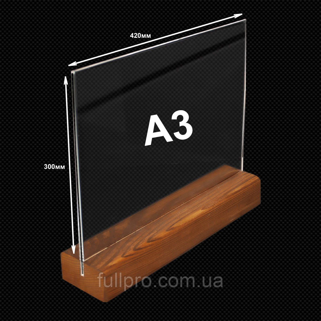 Менюхолдер А3 на дерев'яній підставці Палісандр горизонтальний